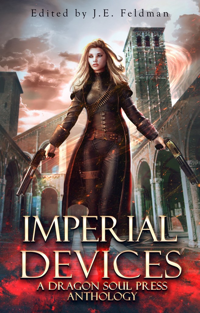 Imperial Devices is a steampunk anthology presented by Dragon Soul Press featuring novellas and shorter pieces. From retellings of the Pied Piper and bounty hunters hot on the trail of criminals to treasure hunters discovering ancient secrets and horrifying creatures lurking in the dark, this anthology has it all.